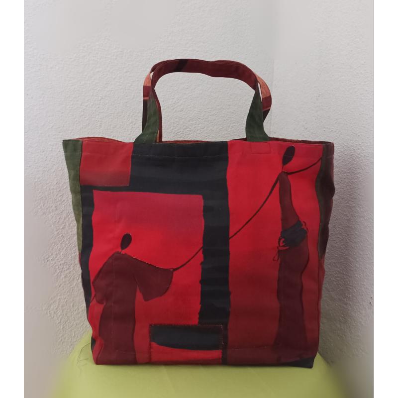 Sac cabas rouge imprimé.