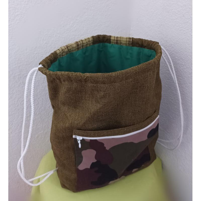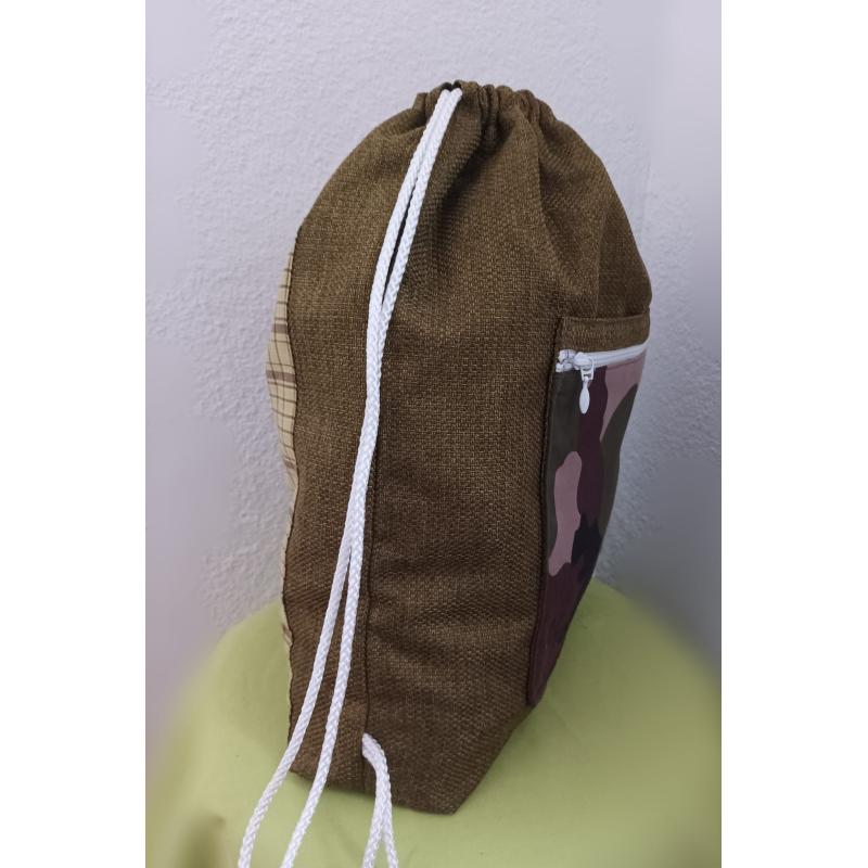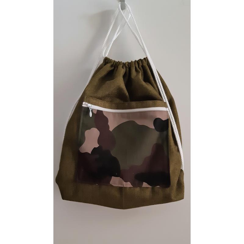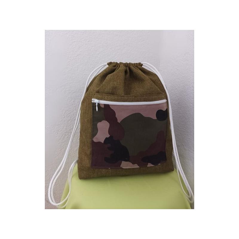 Sac à dos kaki à cordon coulissant : L.38 - H.40 - P. 9