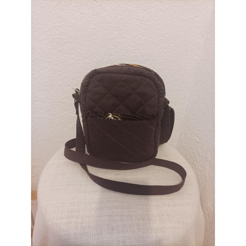 Sacoche matelassée patchwork marron avec applique brodée tête de mort.